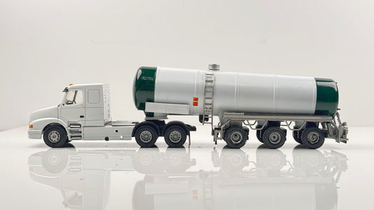 LION TOYS 1/50 SCALE - VOLVO TRACTOR UNIT & GREEN/WHITE TANKER TRAILER - BOXED
