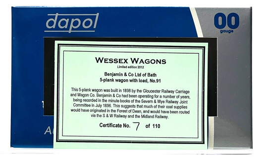 DAPOL 00 GAUGE - BENJAMIN & CO OF BATH 5 PLANK WITH LOAD NO.91 (WESSEX WAGONS)