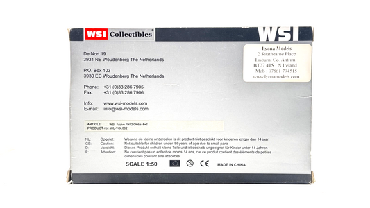 WSI 1/50 SCALE - WL-VOL002 - VOLVO FH12 GLOBE 6X2 WHITE TRACTOR UNIT BOXED