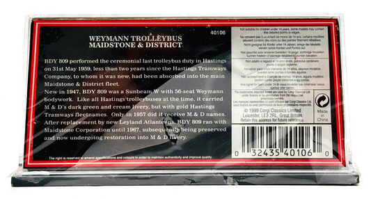 CORGI OOC 1/76TH SCALE - 40106 - WEYMANN TROLLEYBUS MAIDSTONE & DISTRICT SEALED
