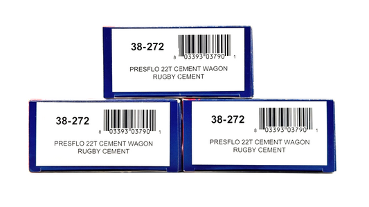 BACHMANN 00 GAUGE - 38-272 - PRESFLO 22T CEMENT WAGON RUGBY CEMENT BOXED X3