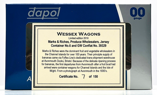 DAPOL 00 GAUGE - MARKS & RICHES JERSEY CONTAINER & CONFLAT 39329 (WESSEX WAGONS)