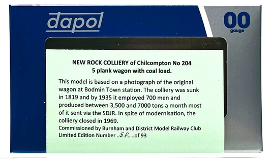 DAPOL 00 GAUGE - NEW ROCK COLLIERY CHILCOMPTON PLANK 204 (BURNHAM DMRC LTD ED)