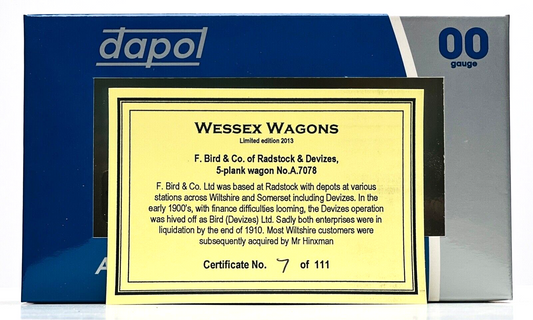 DAPOL 00 GAUGE - F. BIRD & CO RADSTOCK DEVIZES PLANK 7078 (WESSEX WAGONS LTD ED)